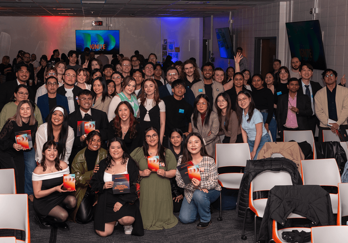 The Art of Becoming represented the next chapter in the Ignite Awards story, celebrating fourth-semester students graduating in Summer 2025 from SAIT’s School for Advanced Digital Technology. The event was created by a student team — Angelo Mangahas, Crystal Park, Lin Vu, and Woo Jeong — working alongside SAIT faculty. Centered on the idea of growth and transformation, the celebration reflected the journey students take as they develop their craft and step into the creative industries. That spirit continues to shape the vision for Re:Ignite as the awards evolve into their next chapter.